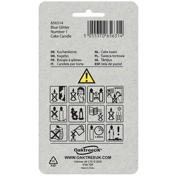 Blue sparkle number 1 candle. Approx, 7cm height.