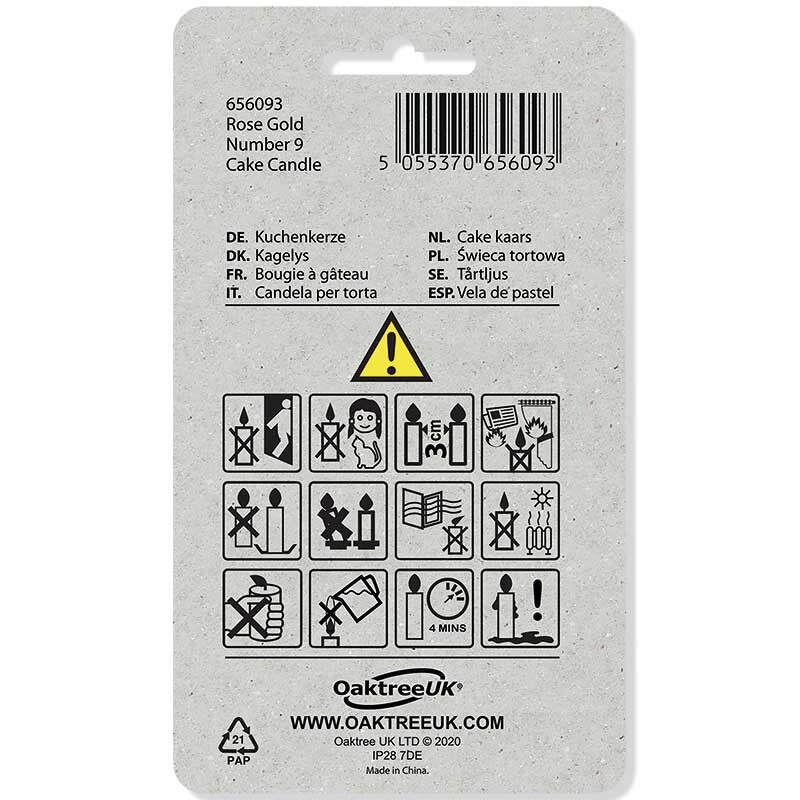 Rose gold number 9 candle. Approx, 7cm height