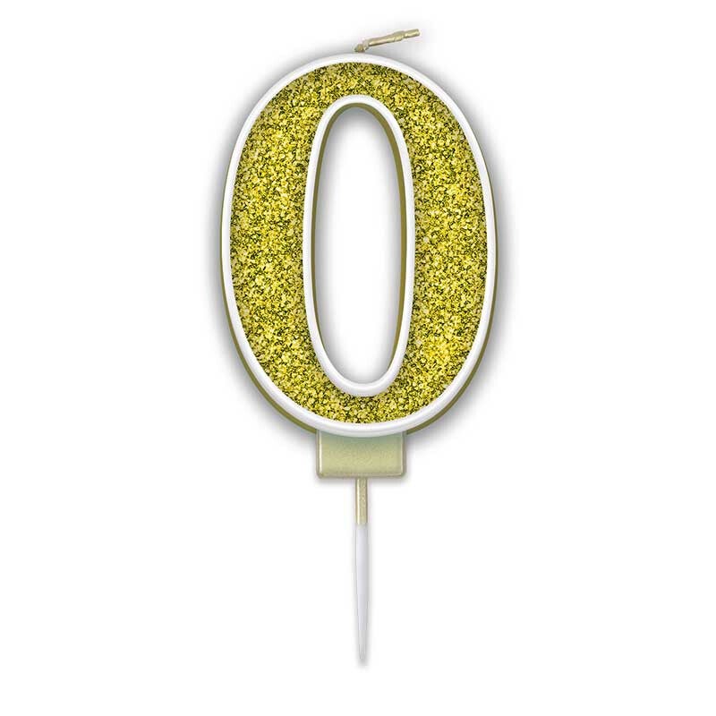 Gold number 0 candle. Approx. 7cm height.