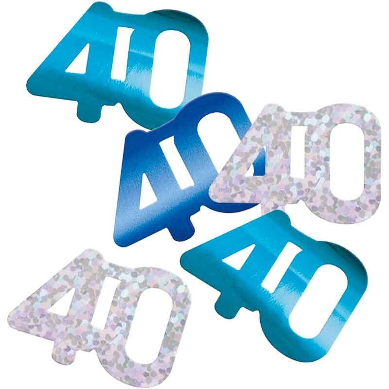 Blue age 40 table confetti.
