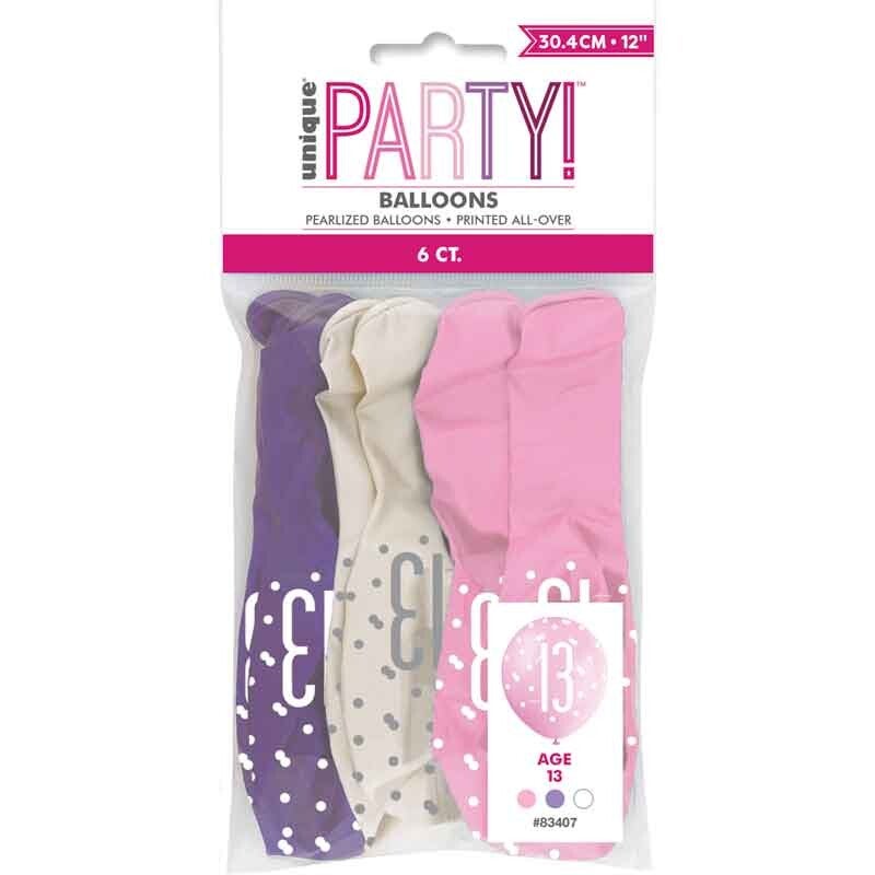 Age 13 balloons. Pack of 6.