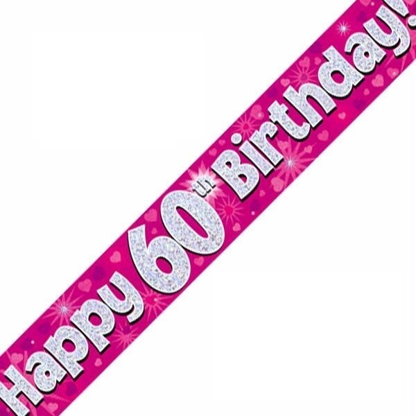 Happy 60th birthday banner. Repeats 3 times so can be cut. 9th in length.
