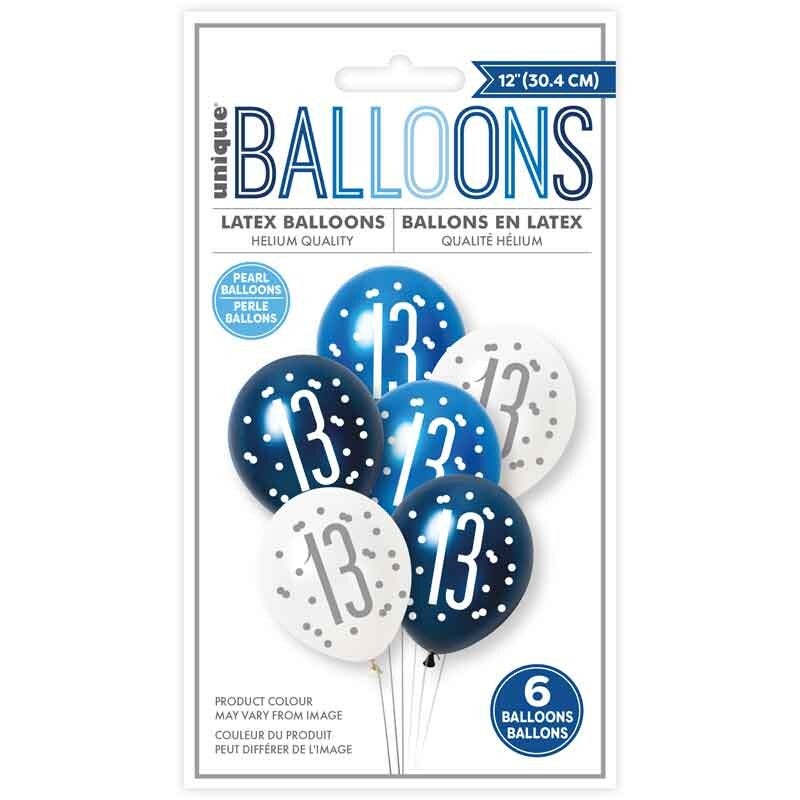 Blue mix AGE 13 balloons. Large 12 inch.