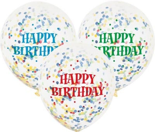Happy birthday colourful confetti balloons.