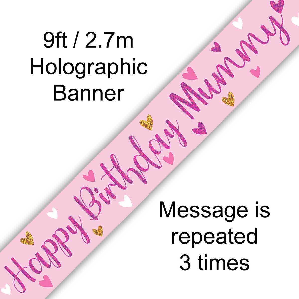 Happy birthday mummy banner. Repeats 3 takes so can be cut. 9ft in length.